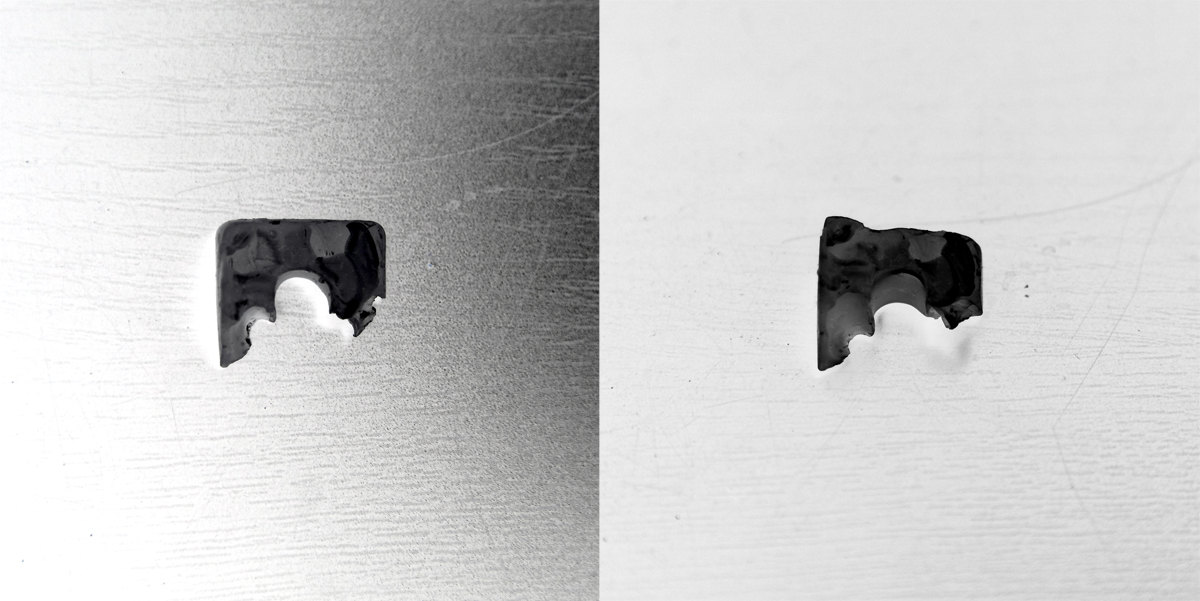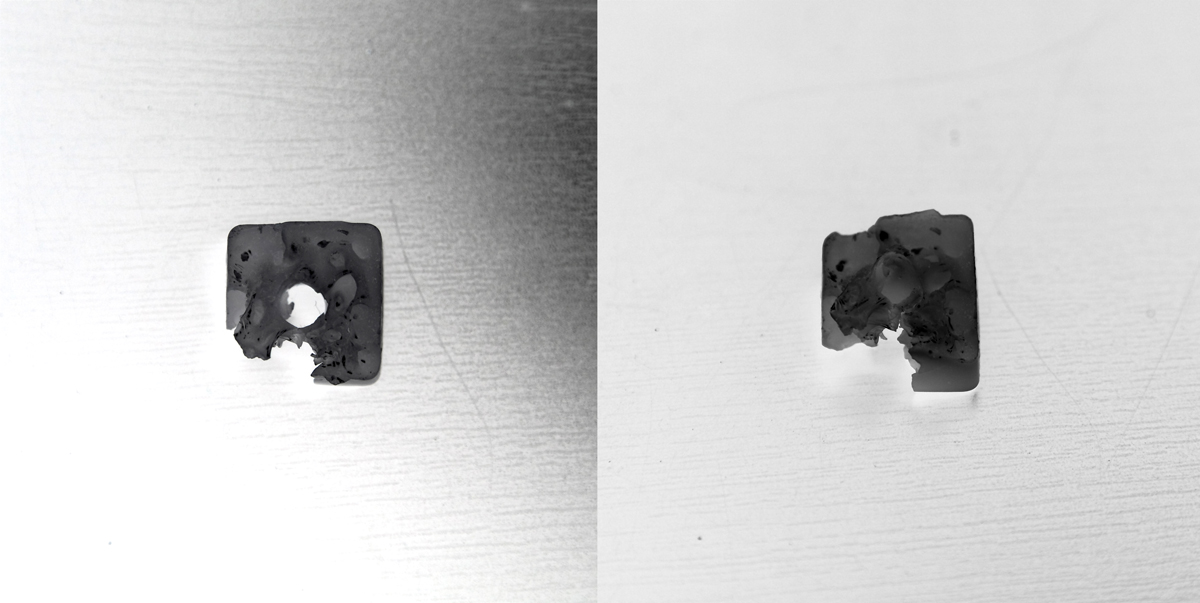 These tests use the implosive energy released when boiled wax is mixed with cold water. This series includes tests with water soluble and water insoluble liquids, as well as liquids with different acid and base values.